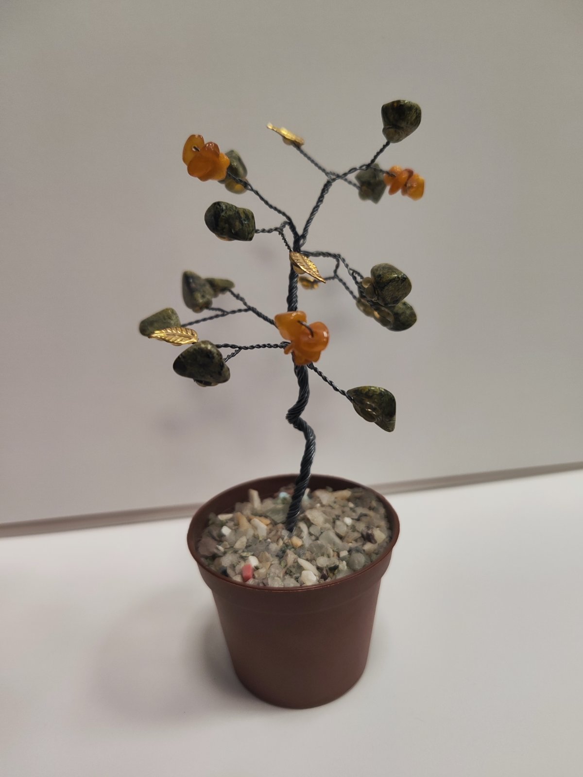Дерево счастья из змеевика и цитрина.