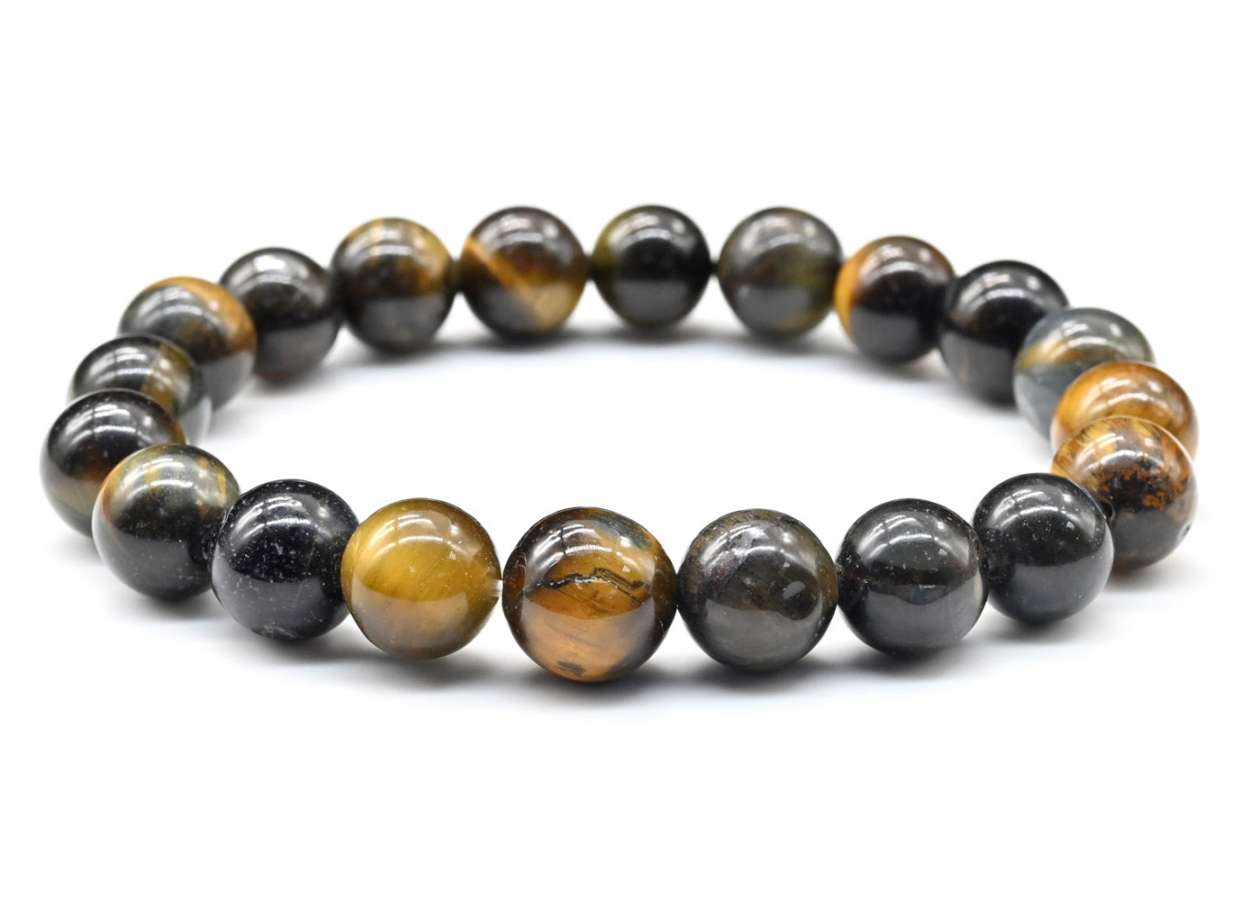 Браслет шарик 8мм из тигрового, бычьего, соколиного глаза