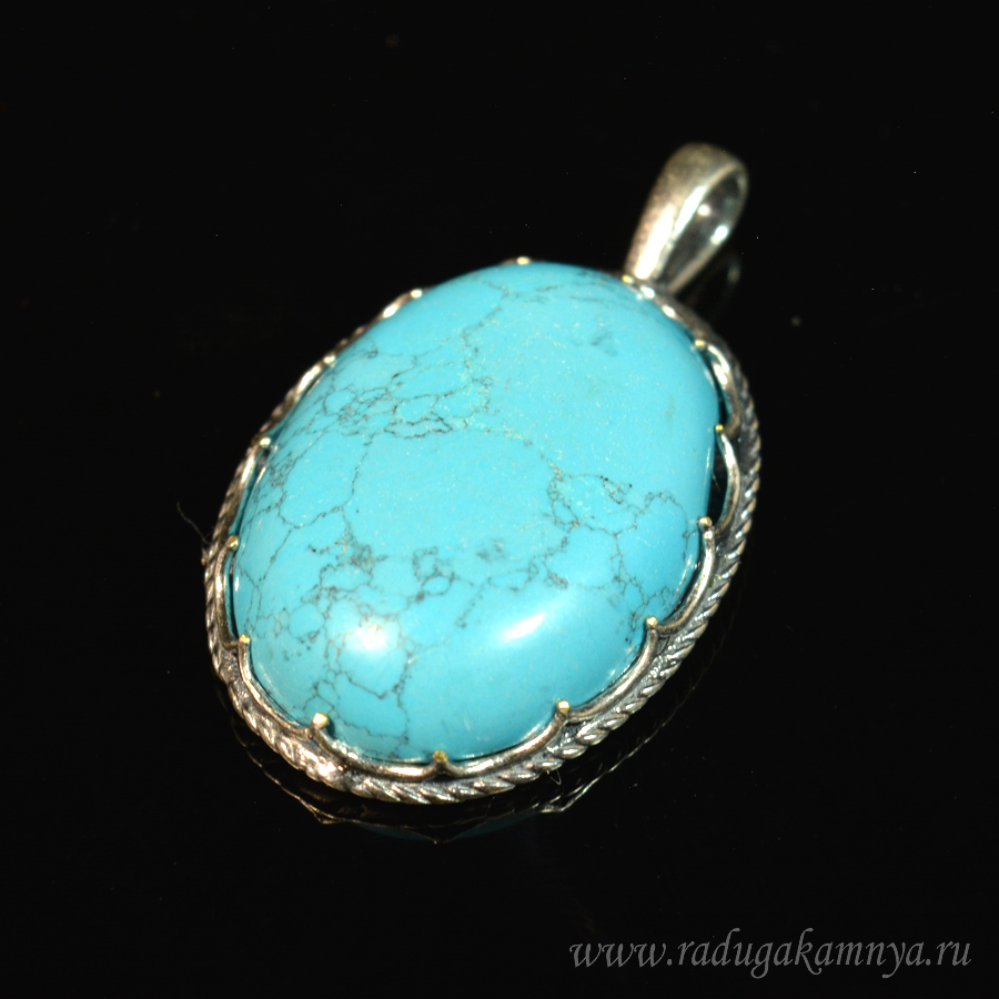 Кулон с бирюзой в мельхиоре, 20*25мм.