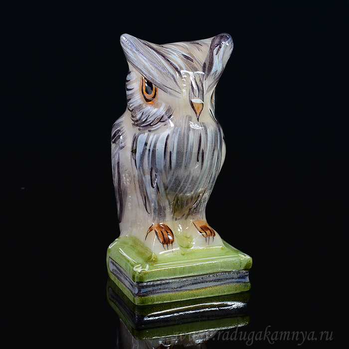 Скульптура из селенита "Сова ученая" 50*50*98мм,