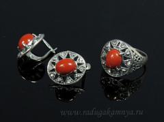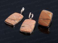 Кольцо серьги с яшмой в посеребрении прямоугльник 26*40мм