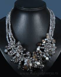 Колье авторское 4нити из агата бразильского с жемчугом и цирконом.