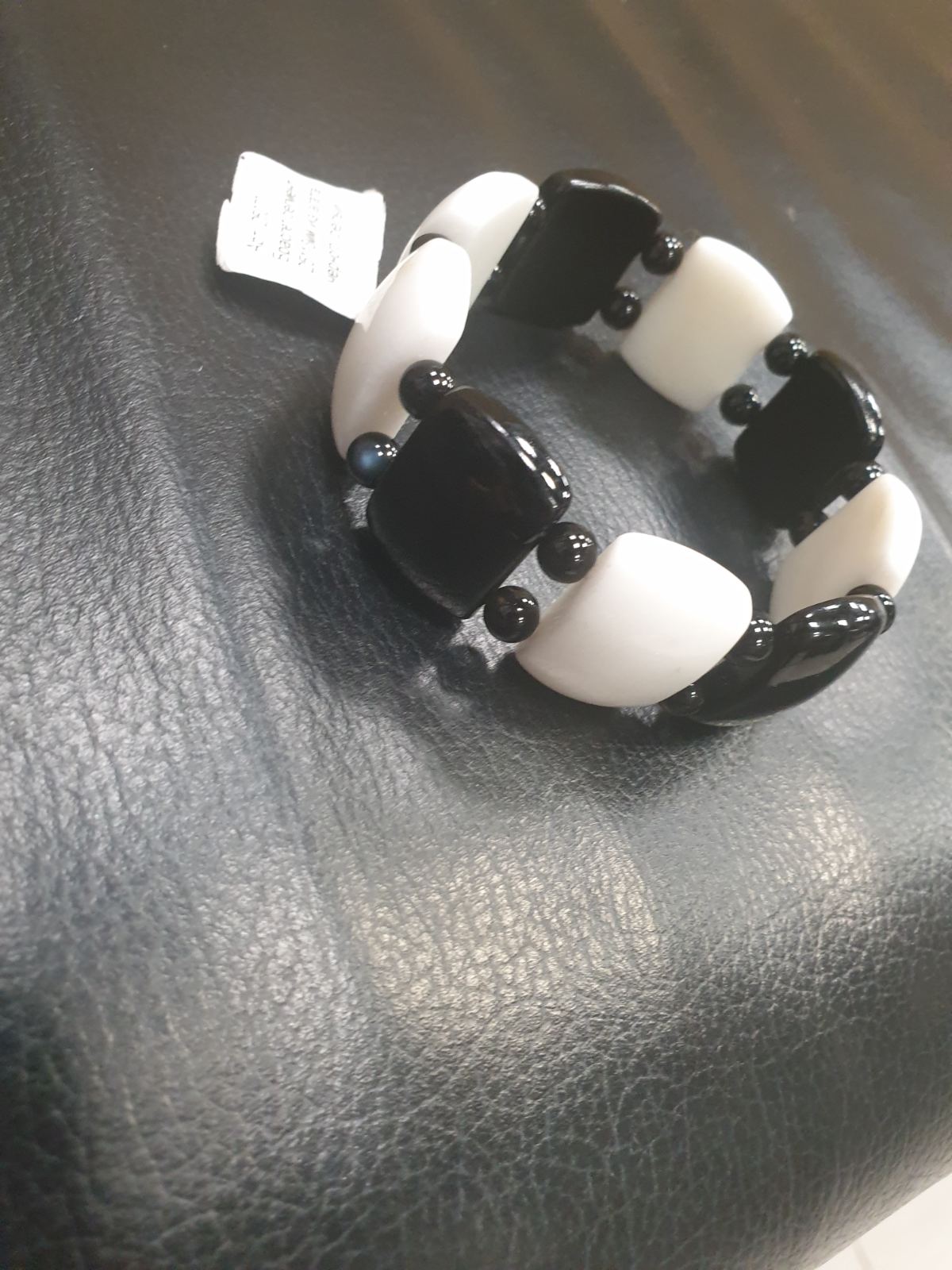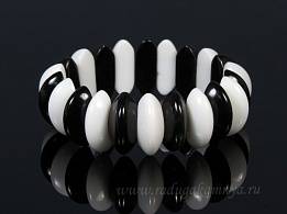 Браслет долька 23*9мм из агата чёрного, белого