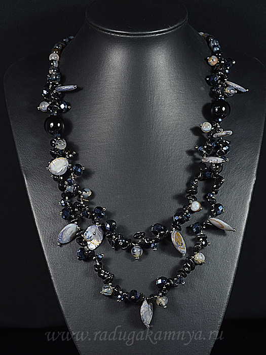 Колье из перламутра с майоркой и агатом, 60см