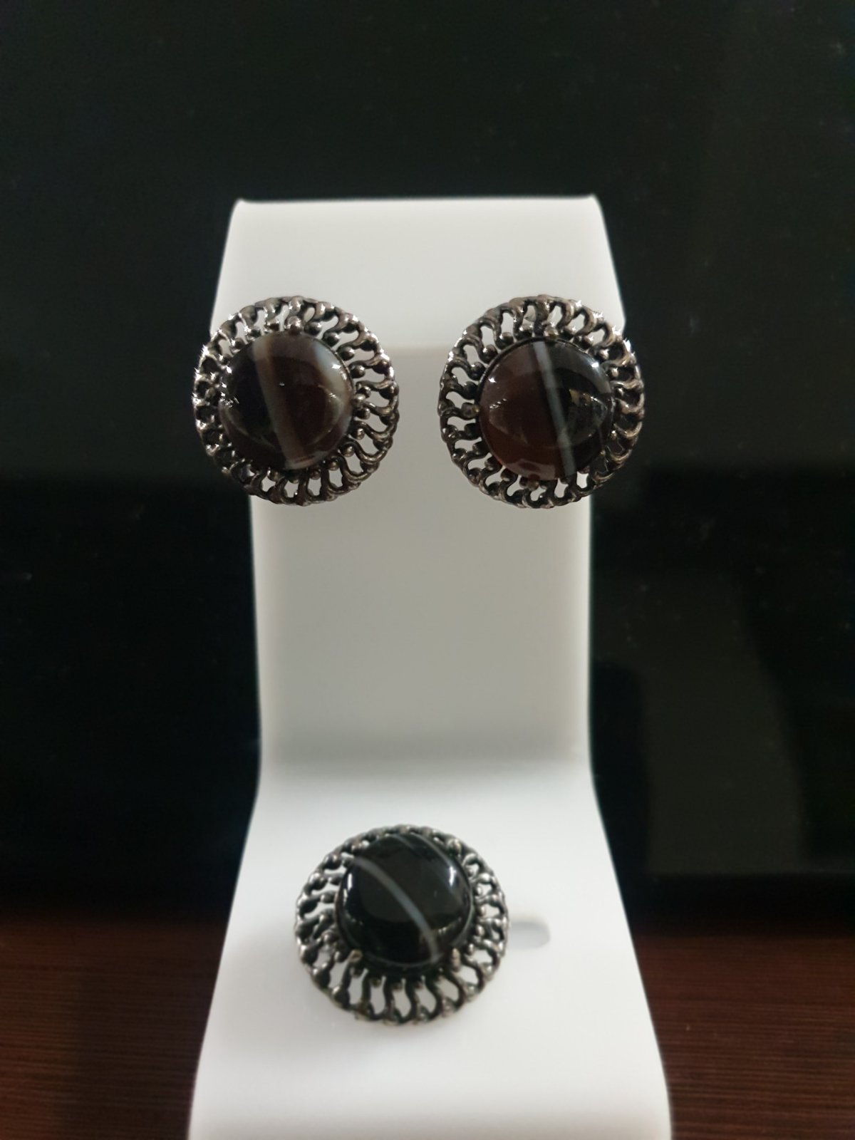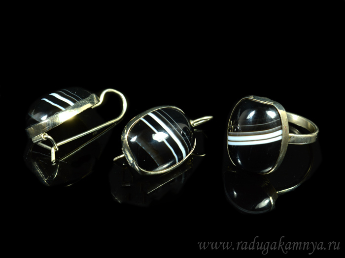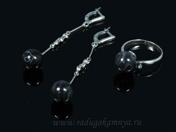 Серьги и кольцо из агата.