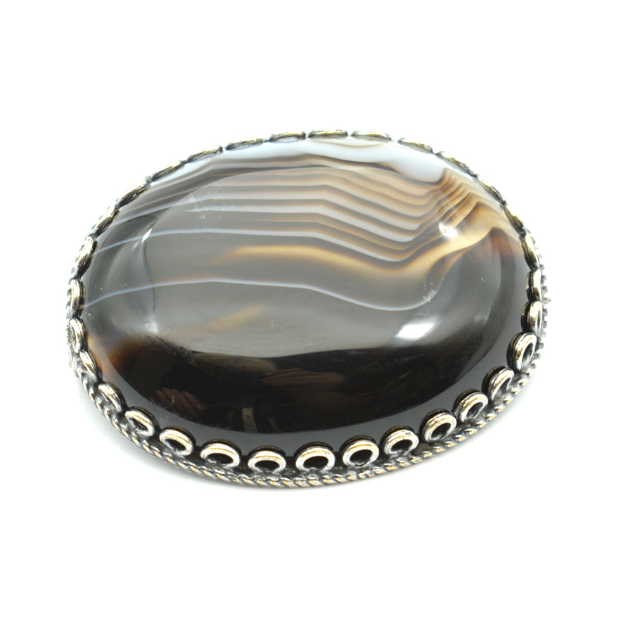 Брошь из агата в мельхиоре, 42*34мм.