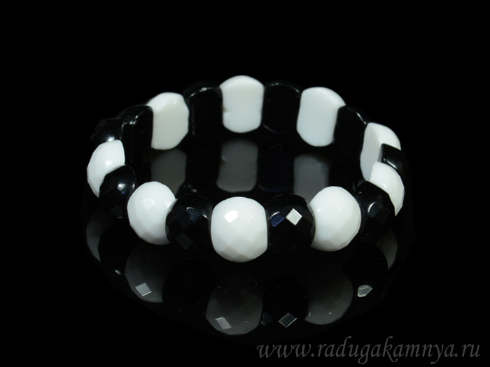 Браслет граненый 15*10мм из агата черного, белого