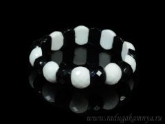 Браслет граненый 18*14мм из агата черного, белого