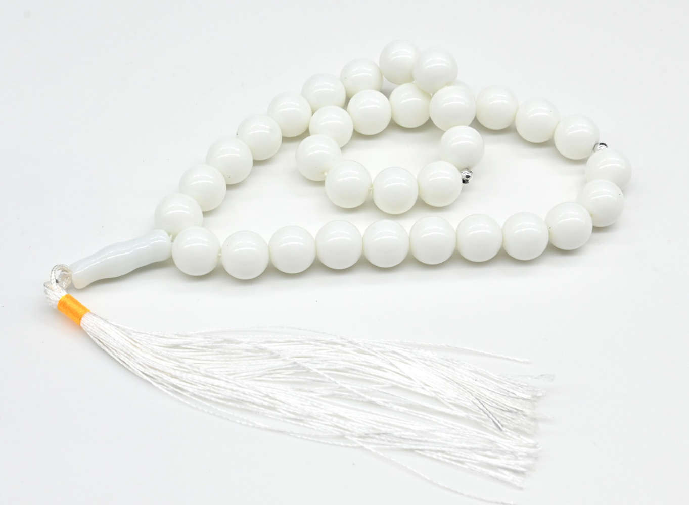Материал — Агат белый Длина 40см (без кисточки).