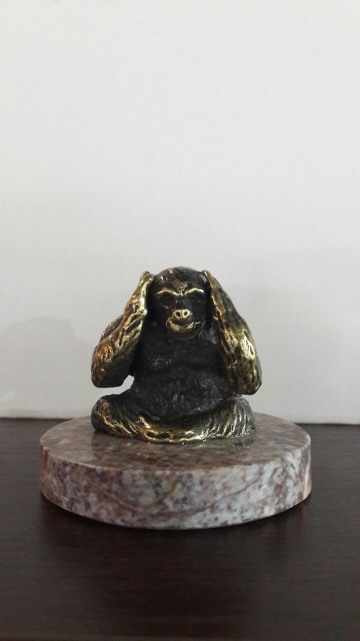 Обезьяна "Ничего не слышу" из креноида и бронзы.
