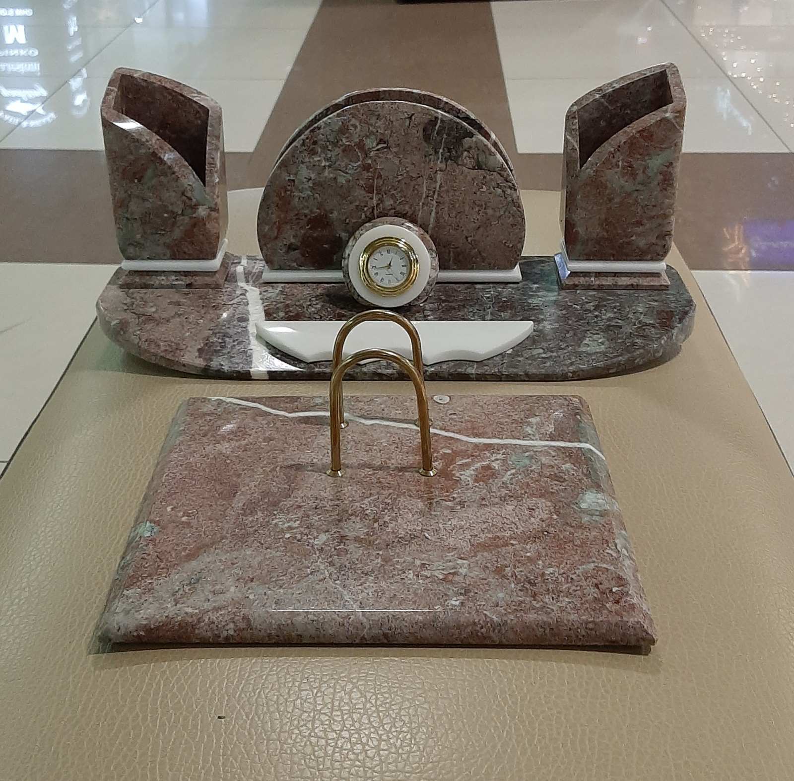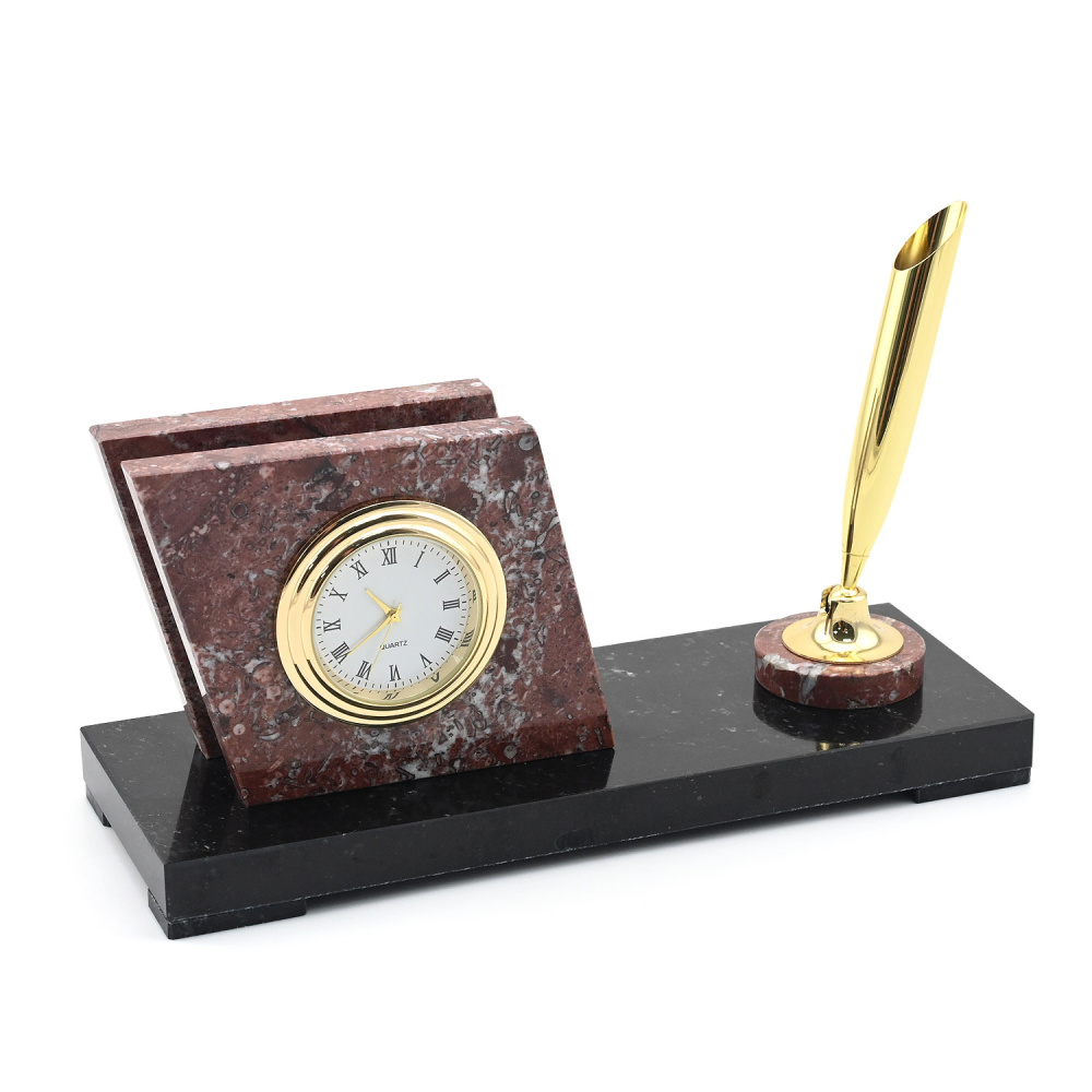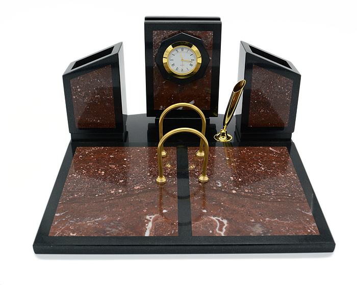 Письменный прибор из змеевика и креноида малый с часами,