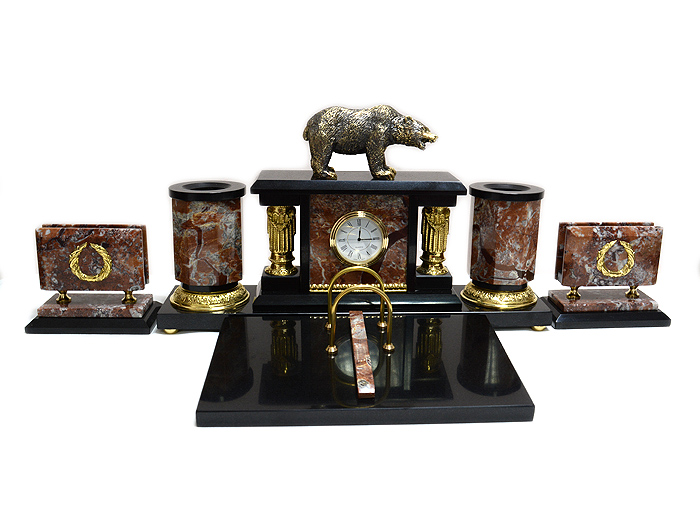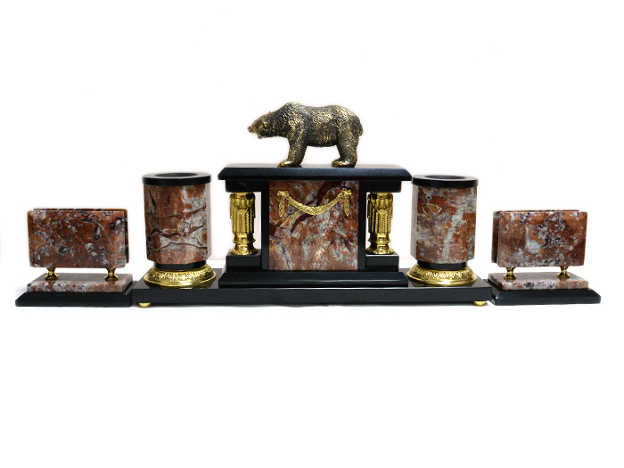 Письменный набор из камня "Медведь" 630*250*215мм