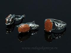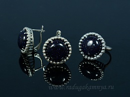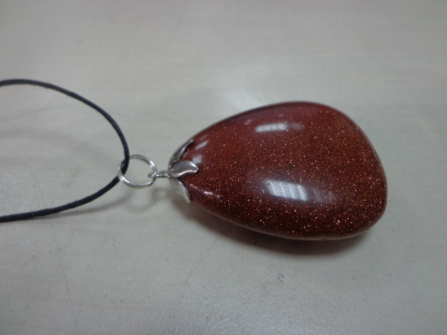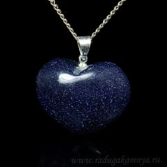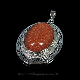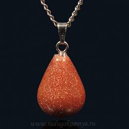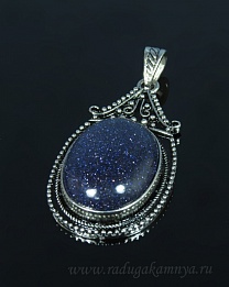 Подвеска с авантюрином синим из мельхиора 30*55мм Модель 33