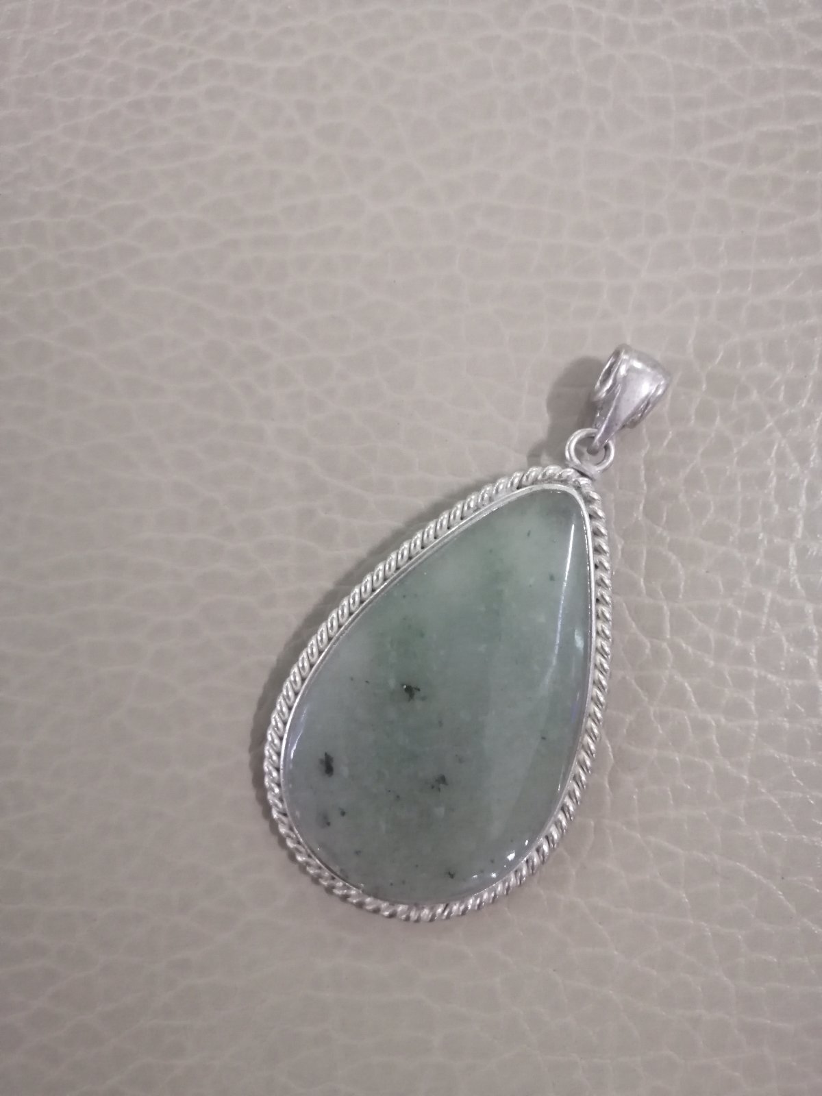 Кулон авантюрин с посеребрением зеленый капля 35*55мм