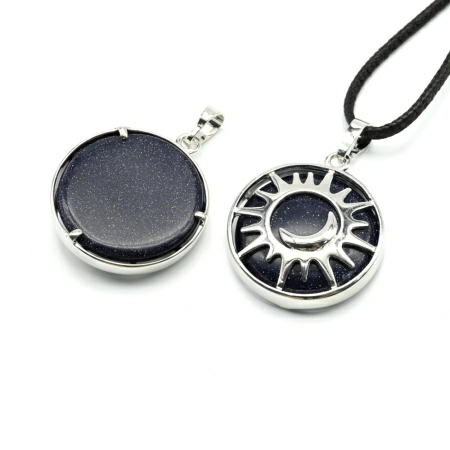 Подвеска Солнце двухсторонняя в металле с авантюрином синим 27*27мм