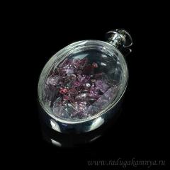 Кулон в металле с крошкой из граната.