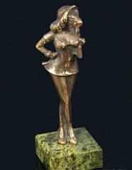 Коза с сумочкой из бронзы на подставке из змеевика 35*35*105мм