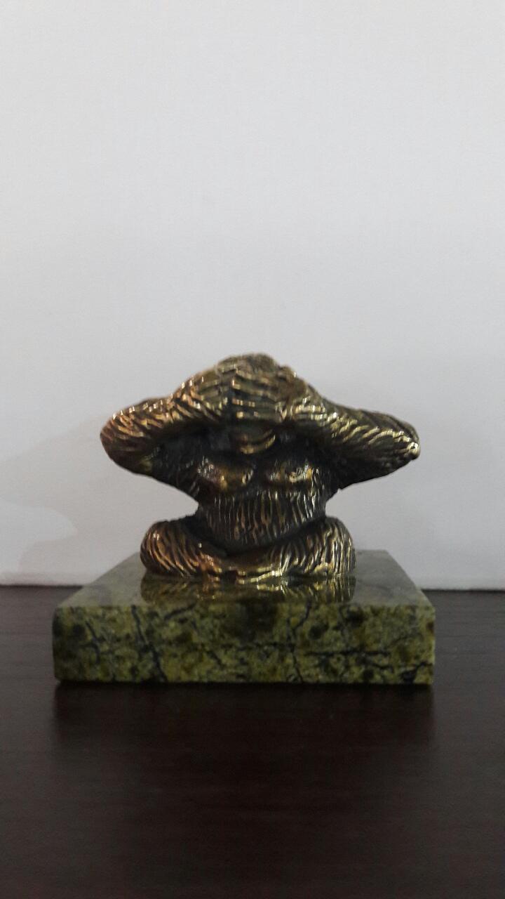 Обезьяна "Ничего не слышу" из змеевика ибронзы.
