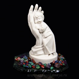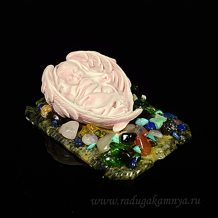 Сувенир из змеевика и мрамолита "Ангелочек спит в крыльях"