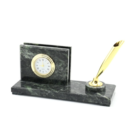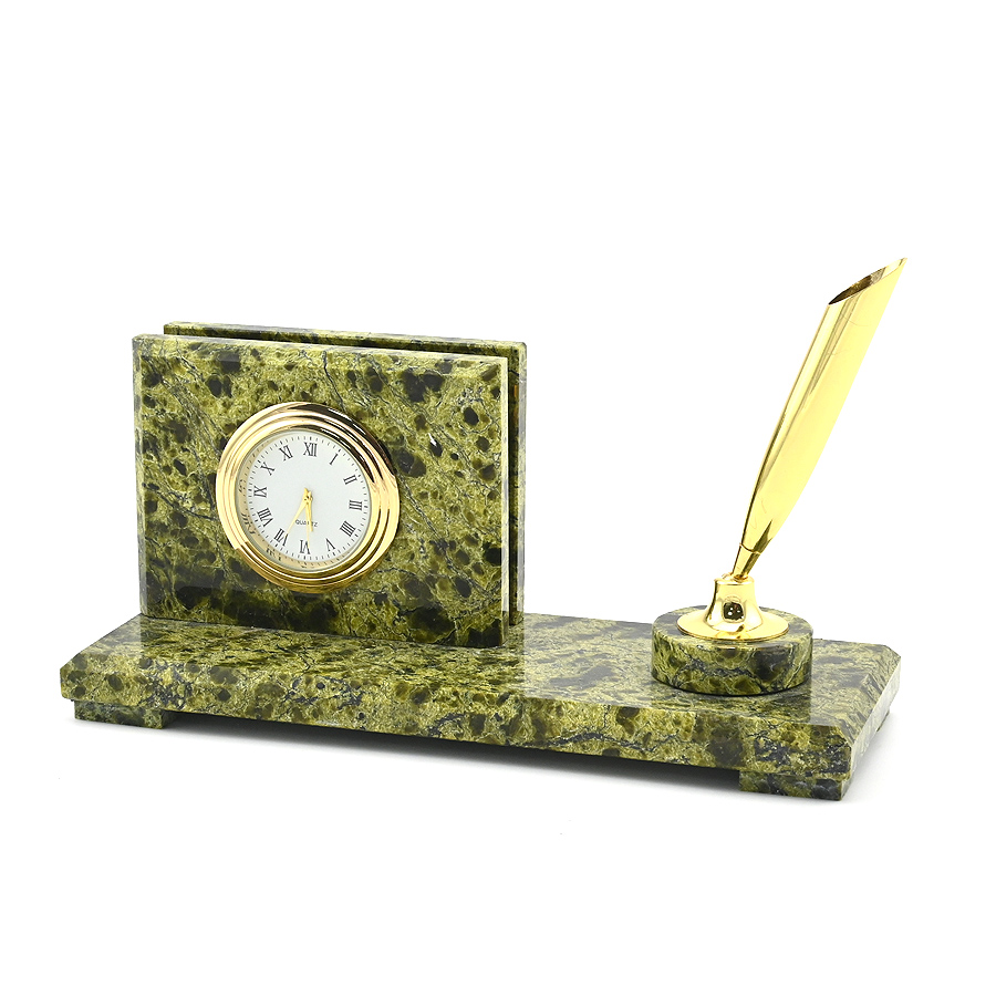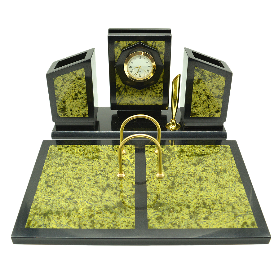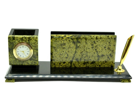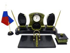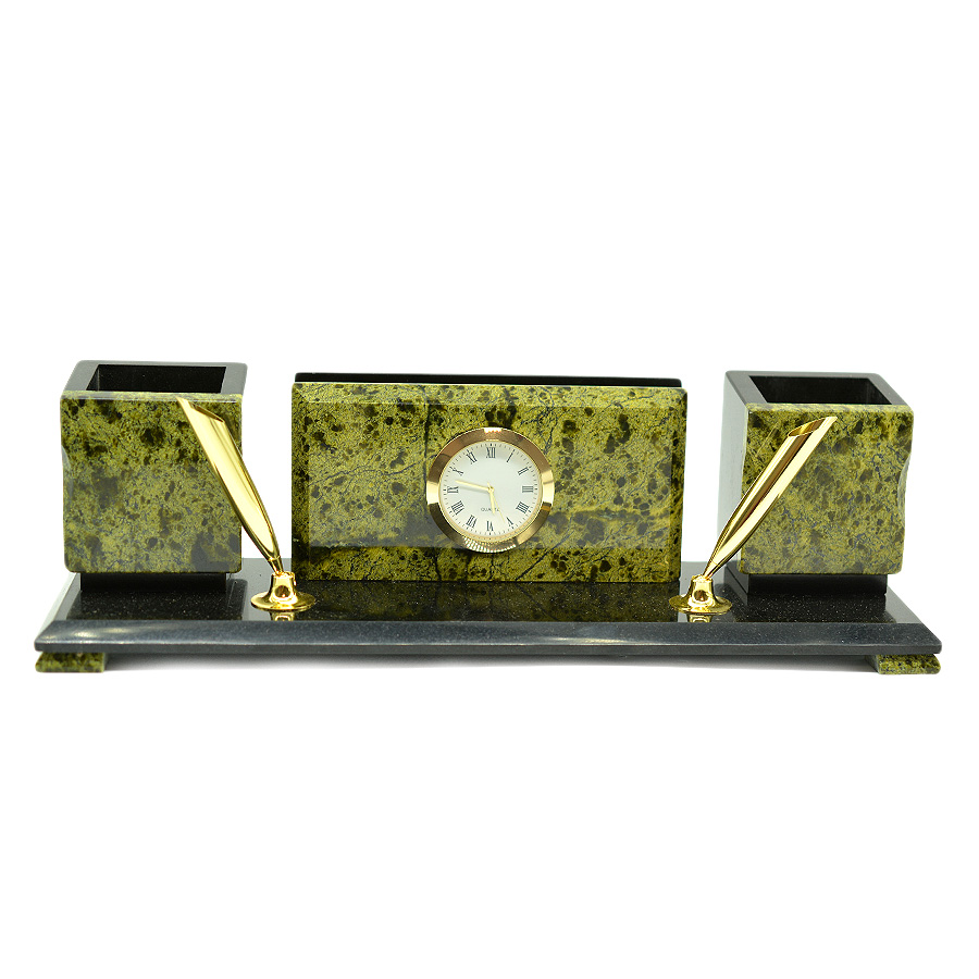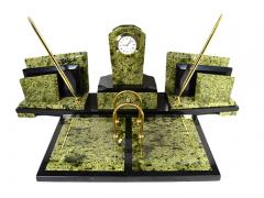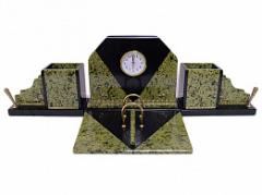 Письменный прибор из змеевика средний с часами, 300*80*95мм