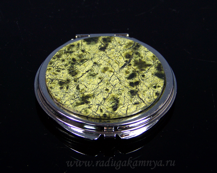 Зеркало с накладкой из змеевика круг 62*66*11мм, серебристое