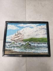 Картина в каменной рамке *Парусник на волнах*