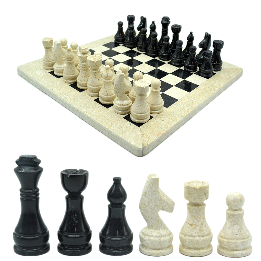 Шахматы из ракушечника светлого и мрамора черного 300*300мм