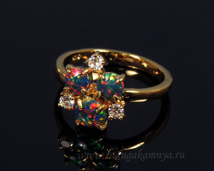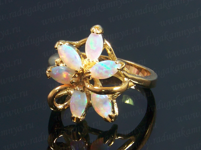 Кольцо японский опал 6 камней Размер 17. Украшение из ювелирного сплава с нанесённым гальваническим методом золотым покрытием толщиной 1 микрон.