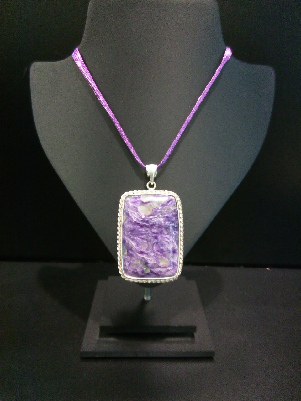 Кольцо с чароитом в посеребрении прямоугольник 14*21мм