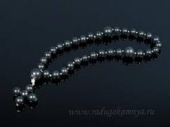 Четки из шунгита мусульманские шарик полированный 8-9мм, 33см.